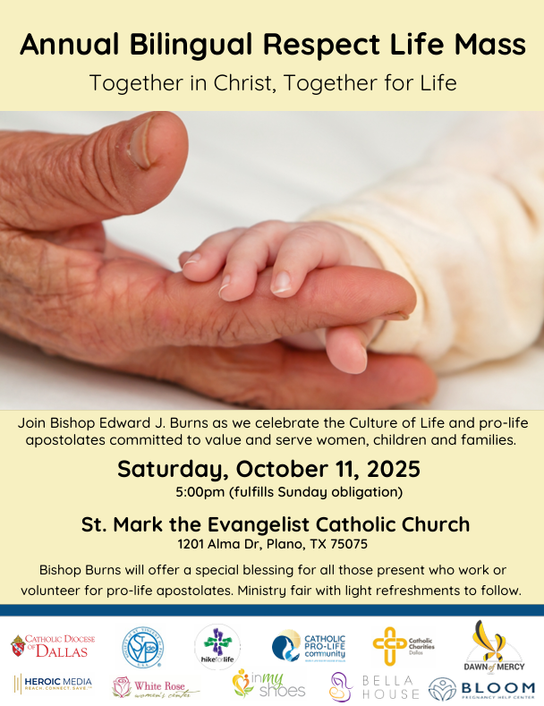 St Mark the Evangelist Catholic Church 1201 Alma Dr, PlanoThis is an annual bilingual Mass to celebrate the Culture of Life and pro-life apostolates committed to value and serve...